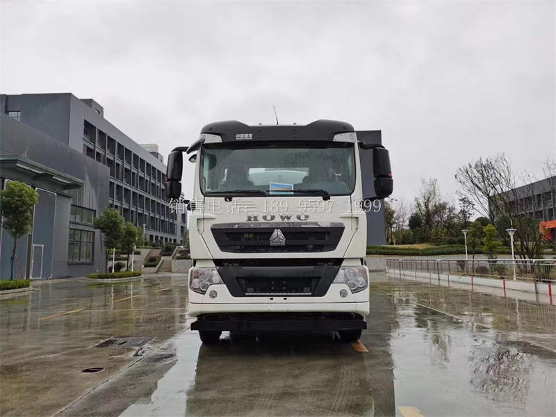 国六19.5方重汽豪沃TX5后双桥绿化洒水车底盘配置:驾驶室采用新款豪沃TX5;专用车;TX-M驾驶室;主气囊+副简易型座椅;MC07.31-60发动机;HW13709XSTC2变速箱+HW70法兰式取力器;H653自调臂前轴(鼓);MCJ11自调臂双后桥(鼓);速比5.29;双层车架(8+5/280);前后标准版多片簧(11/10);8198方向机;标准版排气系统;ABS(4S/4M);中位保险杠(非金属);11.00R20钢丝胎;手电一体电动举升;300L油箱;旋钮式PTO;中国重汽智能通D版。