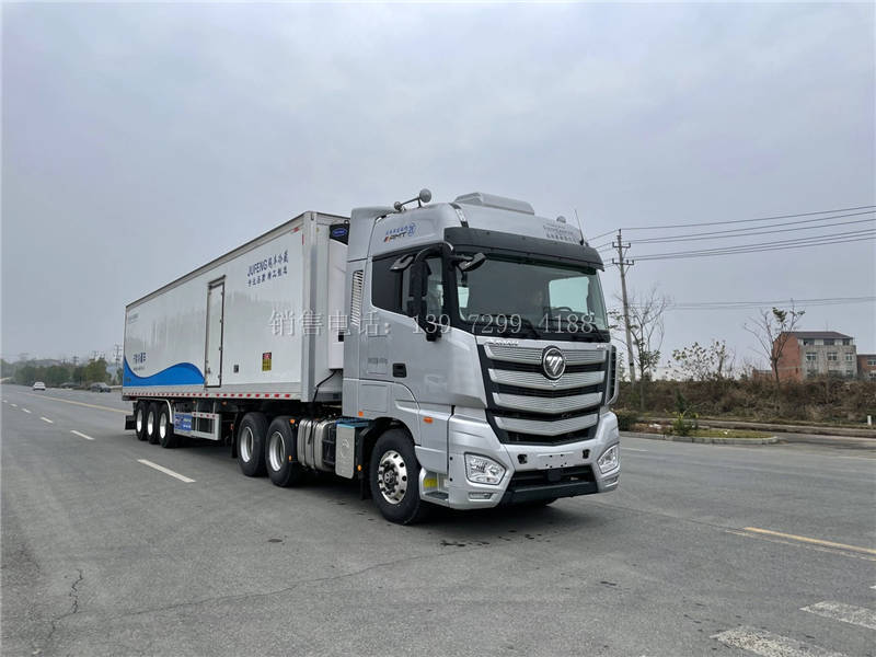 一、底盘配置:三桥大型13米6一体挂铝柜半挂冷藏车,铝合金挂车 ,13吨富华后桥,日上锻造铝圈,全覆盖铝合金挡泥板,铝合金侧防护,约斯特双联动支腿,前后通风器,铝合金通风槽 ,30CM铝合金挡板,带铝合金前挡板,通风布,美国开利大凤凰X4/7300的-18度冷机,带爬梯,单侧门,自重8.5吨。