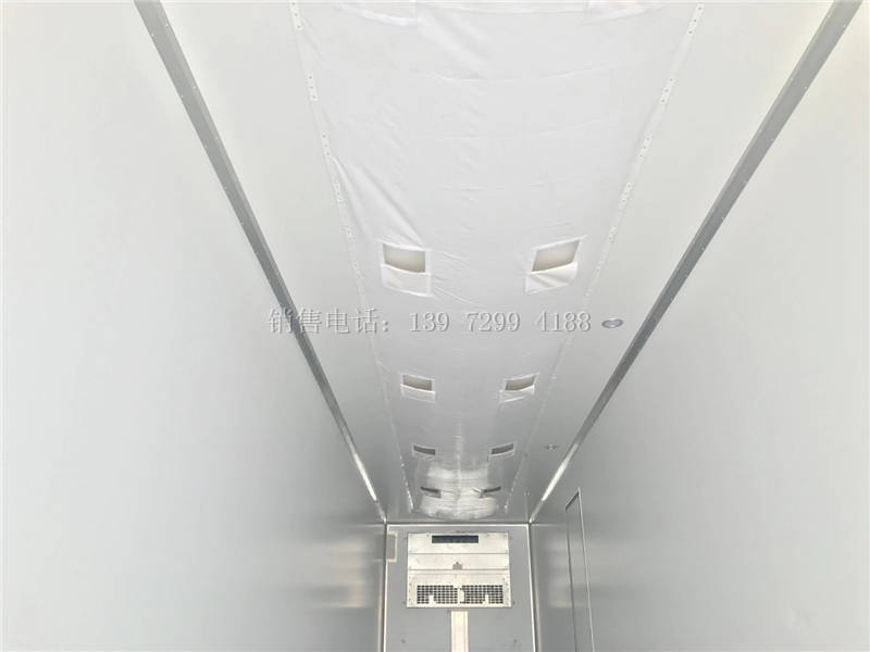 四、选装配置:导轨肉钩、T型通风槽、右侧开侧门、温度实时监控带打印装置、装海鲜厢体内部面料必须选装不锈钢制造、可选装12V-24V外接电源(车辆在停止时,厢体通过外接电源进行制冷)。