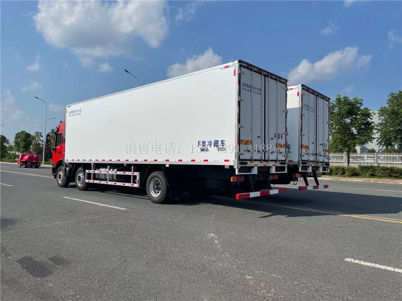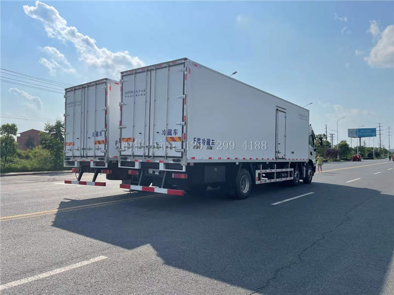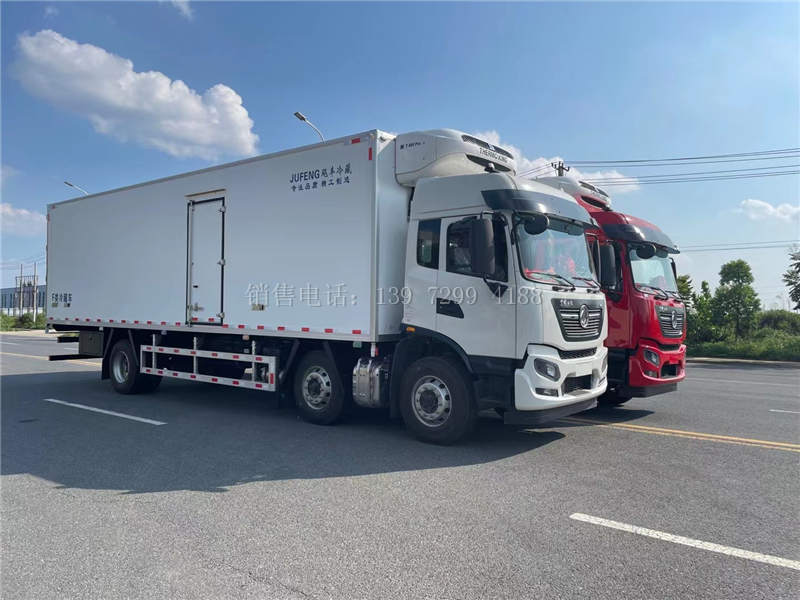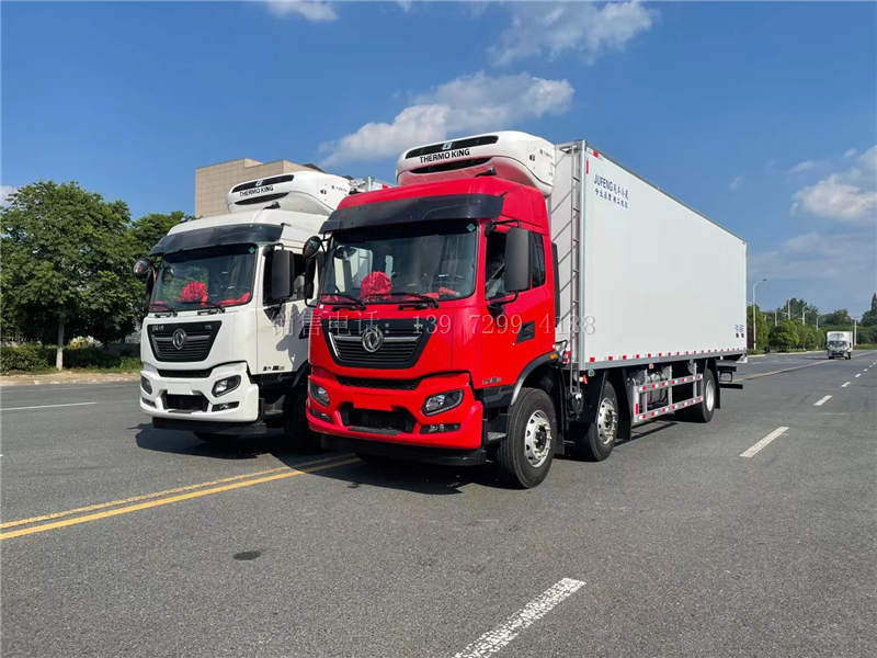 2台国六东风天锦kr小三轴9.6米前四后四冷藏车发车