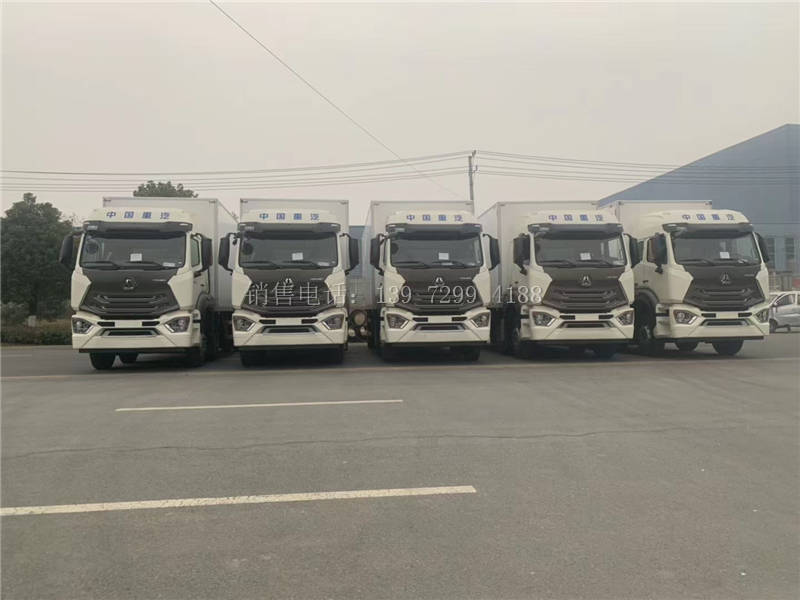5台7米8重汽豪翰小三轴肉钩冷藏车发车了