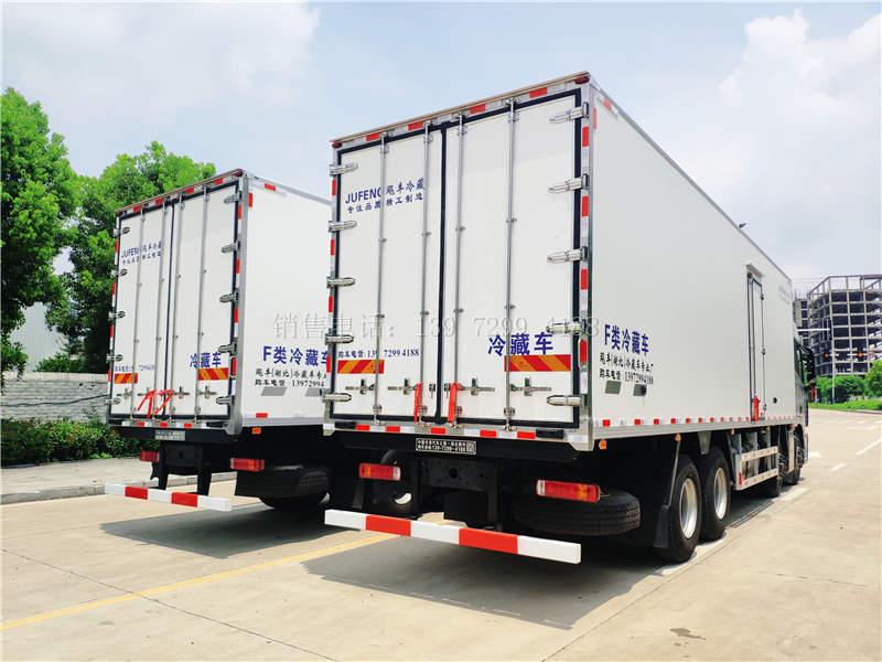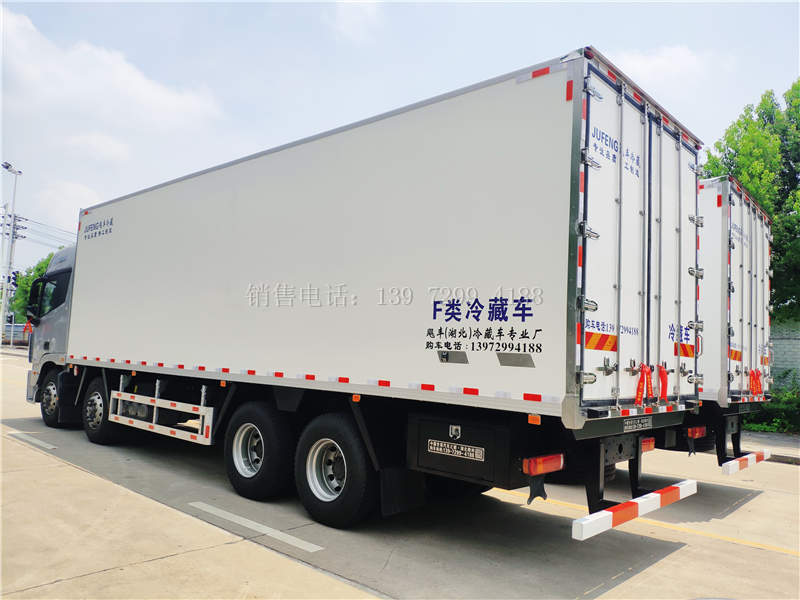 【国六福田欧曼EST自动挡9米6冷藏车】底盘配置:国六福田欧曼EST(自动挡)前四后八9米6冷藏车采用福田欧曼半高顶双卧驾驶室,电动翻转,四气囊悬浮驾驶室、气囊座椅、国六福田康明斯470马力发动机,自动档变速箱,12R22.5真空胎、自动空调、电动门窗、电动翻转、中控锁、ABS、刹车自调臂、可调大灯、行驶记录仪,带电加热后视镜,440免维护后桥,速比3.7。
