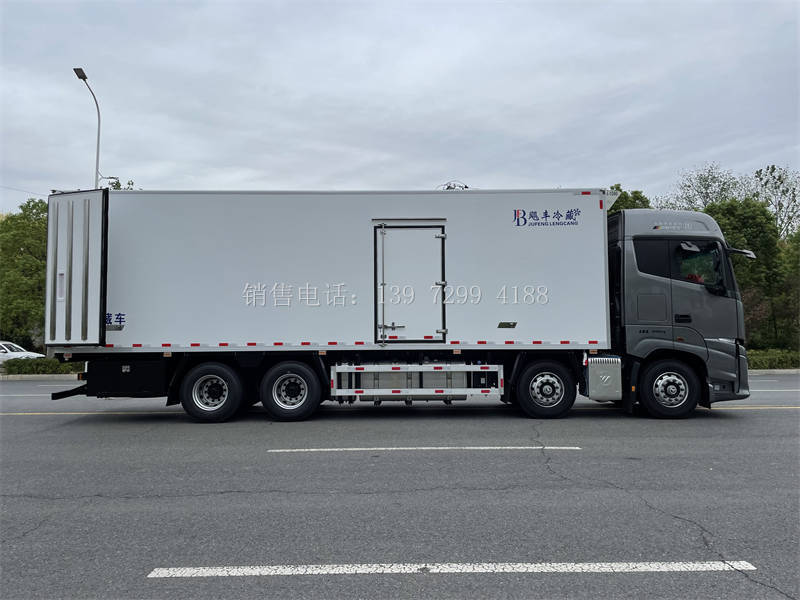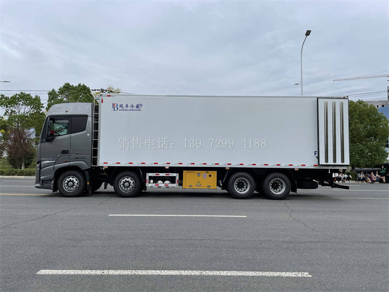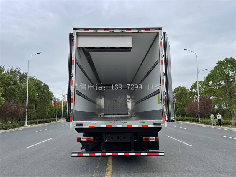 3、厢板:飓丰的冷藏车箱体采用《第三代》全木制骨架,安全、保温又高效 ,松木板断桥隔热技术,中间为聚氨酯保温材料,外面料为2.5mm厚玻璃钢;