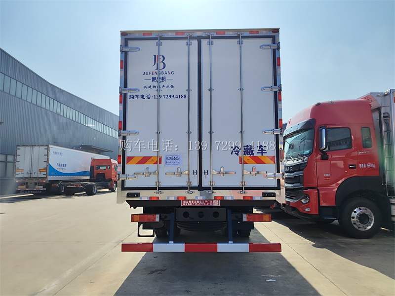 3、厢板:飓丰的冷藏车箱体采用《第三代》全木制骨架,安全、保温又高效 ,松木板断桥隔热技术,中间为聚氨酯保温材料,外面料为2.5mm厚玻璃钢;