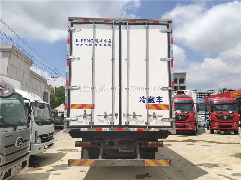 二、厢体配置:(自动挡)前四后八九米六江淮冷藏车箱体是采用先进的木质工艺、断桥隔热技术!箱板是由镀锌管骨架加上环保防水木板用螺丝连接,中间8CM保温板填充、内外2.0玻璃钢,高强度粘合剂,热压成型,外框采用304不锈钢、加厚铝型材包边、27不锈钢大门锁、配件,箱体拼接出来不打胶无缝隙,降温速度快、散温慢、保温效果好,门带斜边,副梁是510大梁钢一次性折成,用压板锁紧,侧护网和后保险杠一次性成型,用螺丝锁紧。(肉钩车采用400mm排版,箱体承载力更强)