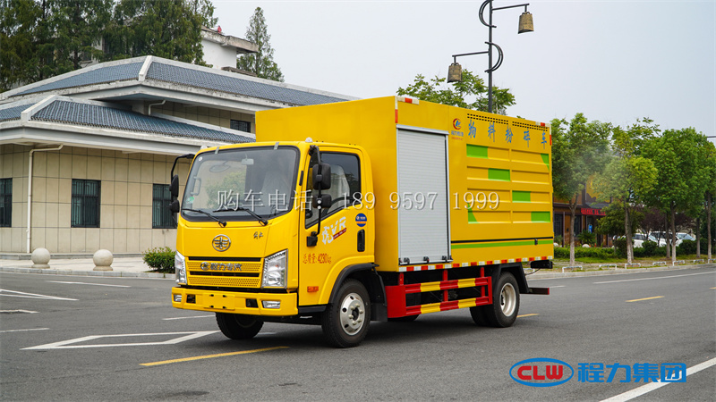 11方解放物料树枝粉碎车能把直径 20CM 以下各种园林树枝、果树裁枝、木质农作物桔杆、园林垃圾废弃物粉碎,厢体容积 11m3,。作业方便、快捷,高效、清洁。减少树枝占地,无污染,更环保。