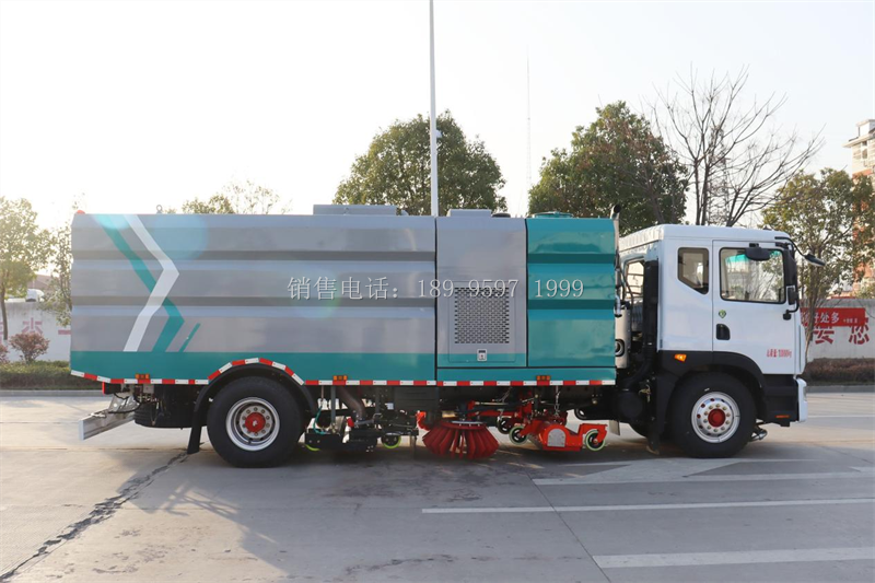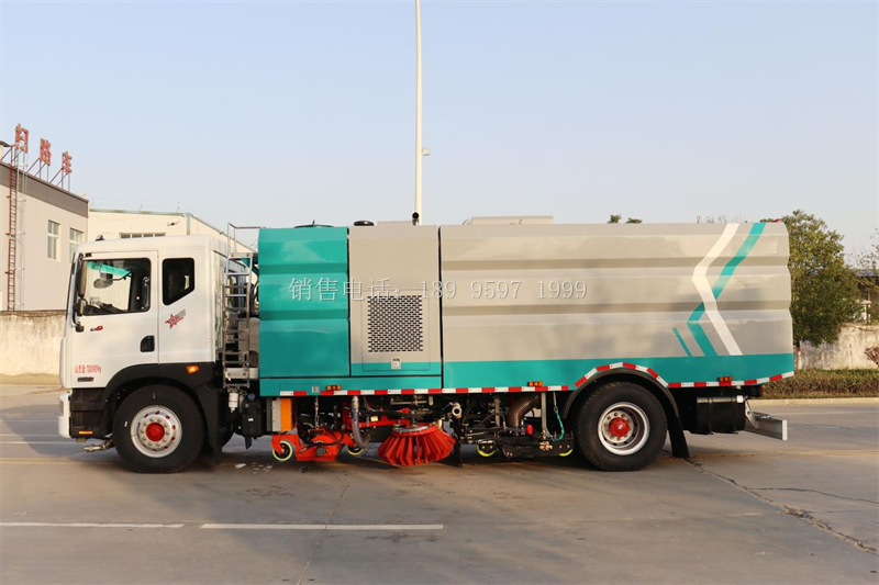 6、中置滚扫、滚扫内置高压冲洗,中置吸盘、吸盘内置高压冲洗,能够深度清理路面的污垢,洗净率达 99%,而普通洗扫车无法达到此效果。