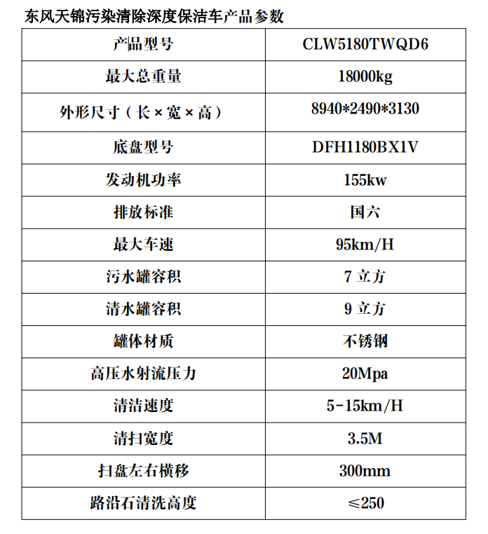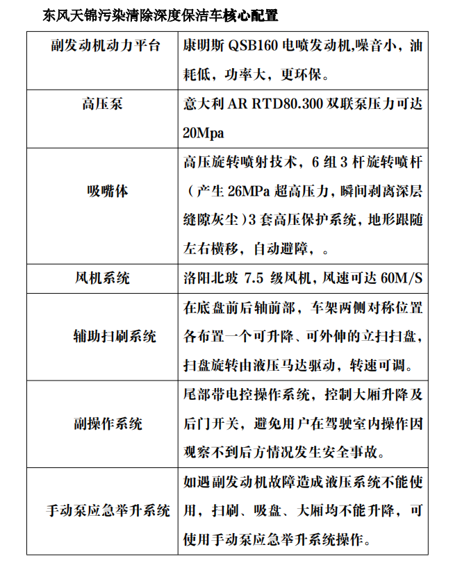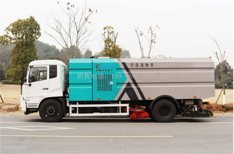 东风天锦污染清除深度保洁车,程力威牌污染清除深度保洁车、道路污染清除车,基于程力人数十载的生产制造的研发 经验,彻底解决现有装备无法有效对道路积垢、板结、油污等污 染物进行清除的难题,从源头上遏制道路扬尘,实现席地而坐, 路见本色。可广泛应用于道路、机场、码头、货场、电厂、钢厂、 矿山、广场等重要场合的深度清洁以及核、生化等毒害物质的清 除,是海绵城市不可或缺的重要装备(透水、排水性道路机能恢 复),也是洪涝等灾害抢险救援的高效利器。