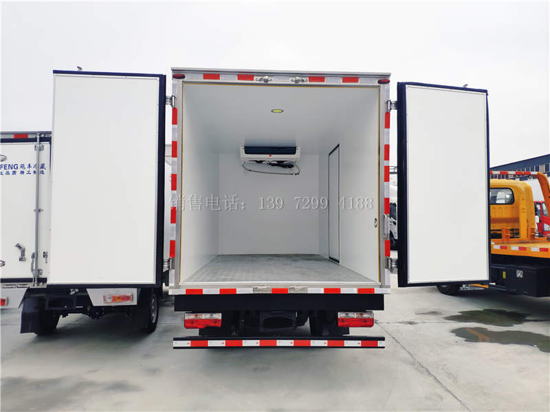 四、选装配置:导轨肉钩、T型通风槽、右侧开侧门、温度实时监控带打印装置、装海鲜厢体内部面料必须选装不锈钢制造、可选装12V-24V外接电源(车辆在停止时,厢体通过外接电源进行制冷)。