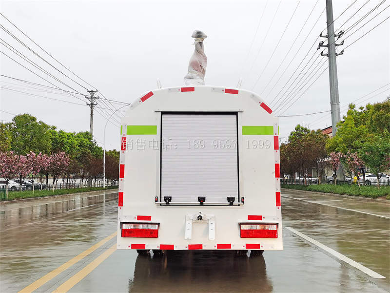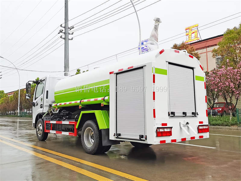 【洒水车专用性能】:前冲(喷)后洒、带侧喷、带后工作平台、平台上安装绿化洒水高压炮(炮喷射形状可调:直冲状、大雨、中雨、毛毛雨,可连续调节,最大射程可达30米),配备大功率专用洒水泵,带消防接头,带自流阀,带自吸功能,带滤网。吸程≥6米 洒水宽度≥16米 射程≥30米。