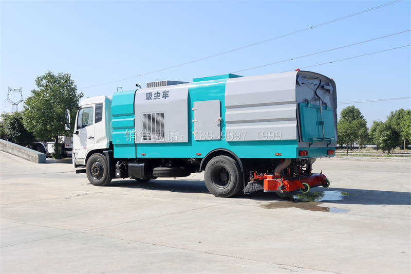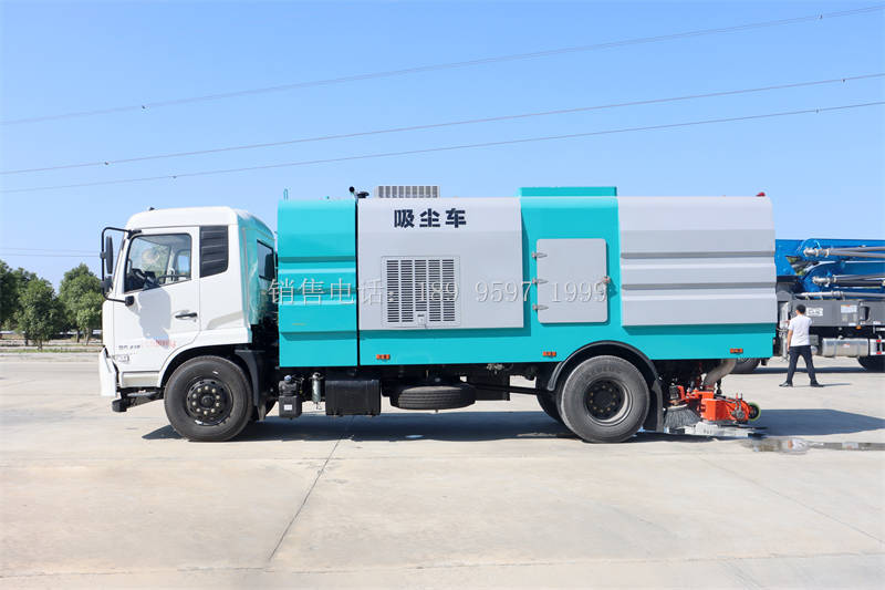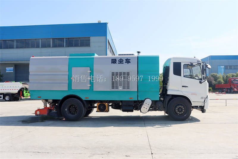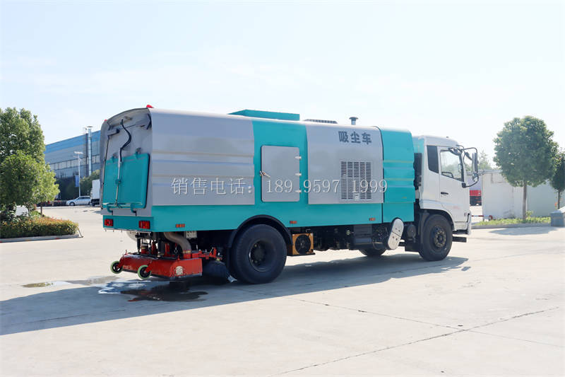 程力东风天锦VR后置吸尘车采用东风天锦VR国六二类原厂汽车底盘改装,加装副发动机、风机、清水箱、垃圾箱、后置吸盘,工作视频探头,自动脉冲清理功能,液压系统、专用装置电控系统和副车架等改装而成,采用负压纯吸的原理,单向进风(无反吹气流),实现粉尘只进不出、无扬尘,实现PM2.5零排放,适用于城市道路、高架桥、广场、机场、码头、厂区等水泥混凝土路面和沥青路面的机械化保洁作业。