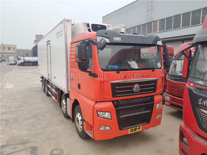 (上图)重汽汕德卡9米6冷藏车配开利C850独立冷机
