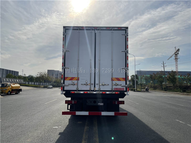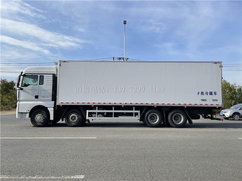 前四后八9米6重汽汕德卡G7肉钩冷藏车在严格治超大形势下,在资源运输细分市场中,标载运输已经成为主流,从车辆层面能帮助卡友多拉多赚钱的有效方法就是降低自重,这款汕德卡G7也采用了常规降重方法:大量铝合金装备“上身”,变速箱壳体、油箱、储气筒、前轮等都采用的是铝合金材质。