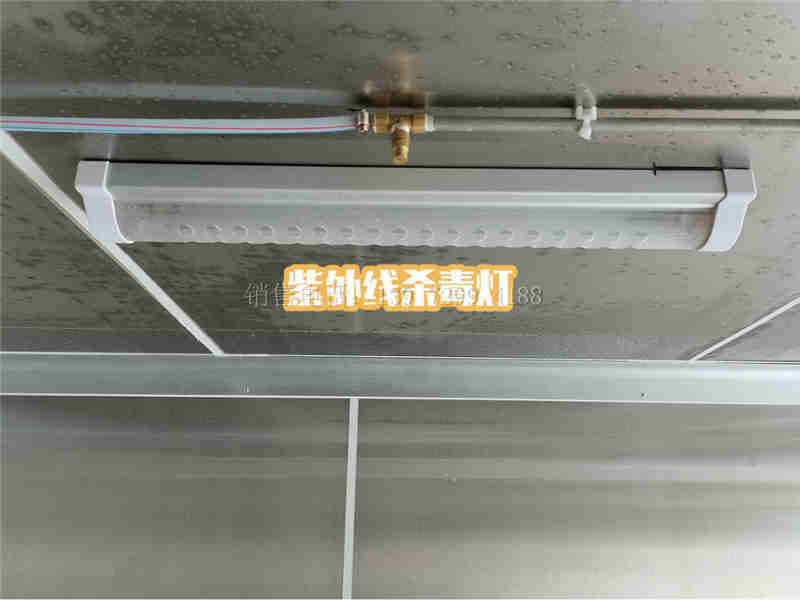 (3)、车厢顶内板面安装配备紫外线杀菌灯,紫外线杀菌灯正常工作时,辐射出大量的253.7nm紫外线,对微生物具有极强的杀伤力,可以在30~45分钟内灭杀细菌,配备消毒喷雾功能可更精准无死角达到消毒灭菌效果。