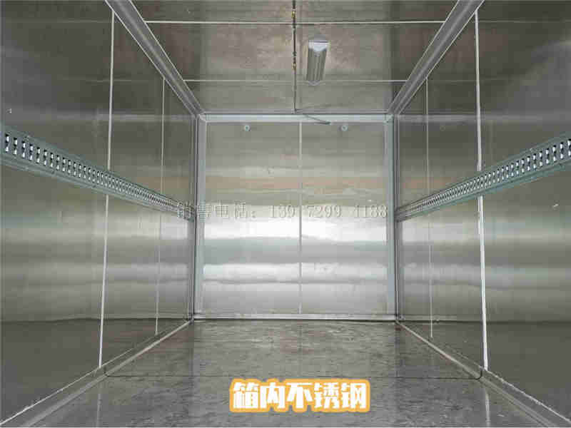 (2)、厢体内壁板采用不锈钢板,耐酸、碱等腐蚀性的消毒液。外板为玻璃钢板,表面光滑平整。两侧安装不锈钢护板,用来固定厢内的不锈钢横撑杆,防止周转箱在行车中的翻转和泄露。车厢底部四周及转角圆滑处理,宜清理死角,便于消毒,箱内可用腐蚀性消毒液进行。