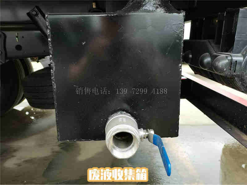 (6)、排污:在车厢底板靠近前内板开设了排污孔,安装了由不锈钢材料制作的排污管,方便消毒液的顺畅排出。