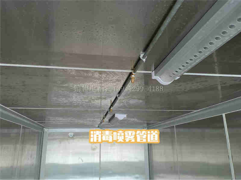 (3)、车厢顶内板面安装配备紫外线杀菌灯,紫外线杀菌灯正常工作时,辐射出大量的253.7nm紫外线,对微生物具有极强的杀伤力,可以在30~45分钟内灭杀细菌,配备消毒喷雾功能可更精准无死角达到消毒灭菌效果。