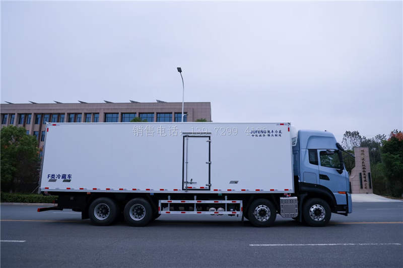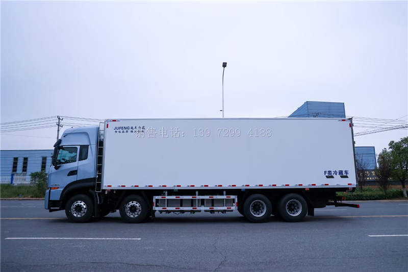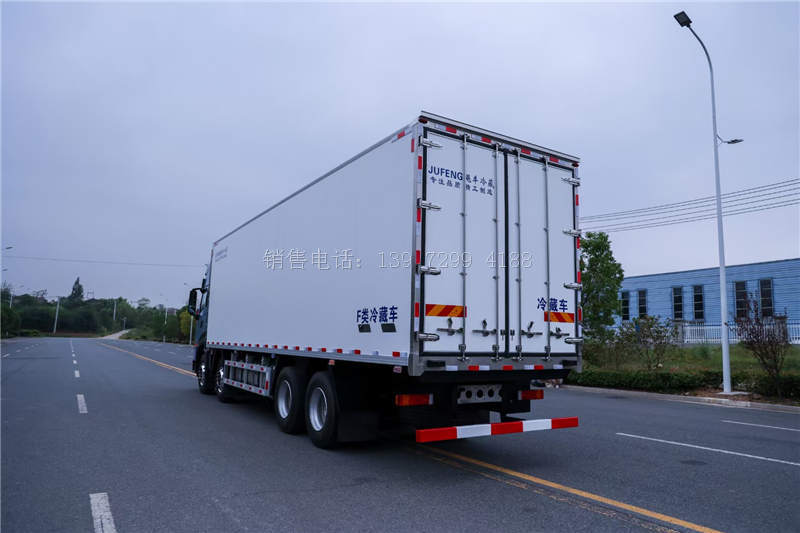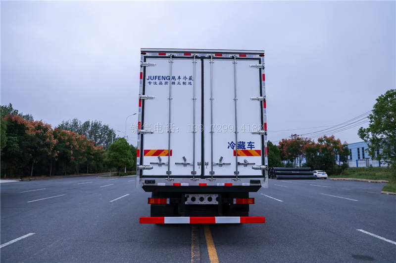 9.6米东风天龙KL前四后八自动挡冷藏运输车采用的冷藏车货箱,有两种尺寸可以选择,分别为9.6米×2.45米×2.57米、9.6米×2.45米×2.6米。当然,有不同运输需求的卡友,也可以选择仓栅货箱、栏板货箱或装有冷机的冷箱等。