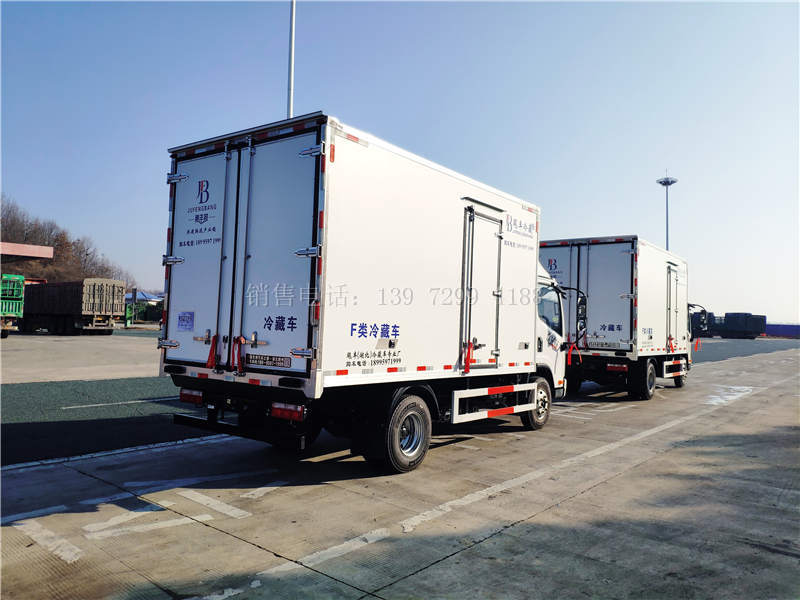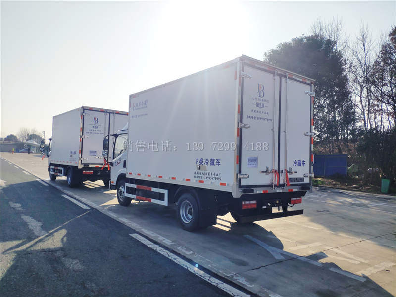 4米2一汽解放虎VN蓝牌锡柴130冷藏车厢体工艺: 厢体材质采用内外玻璃钢,中间8CM聚氨酯保温板,后双开门,厢体右侧靠前选装开侧门,底部采用花纹防滑铝板,前部排水孔,门边条采用迷宫式橡胶密封条,铝合金型材包边,不锈钢包角,不锈钢门锁,不锈钢门框及合页,厢体内节能LED照明灯。