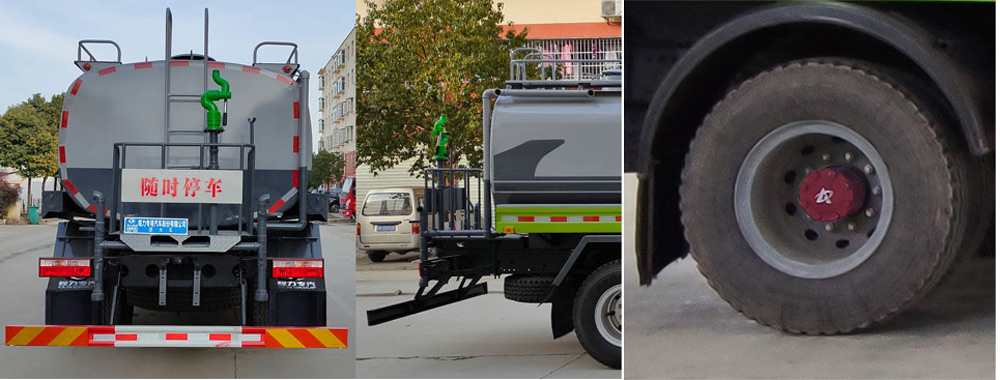 备注: | 备注:1.罐体总容量为9.71立方米,罐体有效容积:9.25立方米,此车型仅选用3950mm轴距 底盘,罐体外形尺寸(长×长轴×短轴)为(mm): 4300×2150×1520; 2、侧防护及 后下部防护装置均采用Q235B材质,均采用螺栓连接,后下部防护尺寸:150×50(mm),离地 面高度480mm。4、ABS系统生产厂家,型号 :焦作博瑞克控制技术有限公司,J ABS。5、 可选装弧形喷雾,箭头灯。选装底盘附件安装位置。6、专用装置:罐体,主要用于洒水及园林绿化。选装 后平台外观,随底盘选装燃油箱,电瓶,尿素罐,储气筒左右安装位置,选装新款轮罩外观样式。选装罐体 外观样式。 | ||