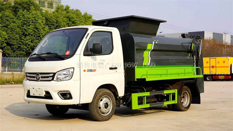 蓝牌5方福田祥菱M1餐厨垃圾车价格装上配置:弧箱形体,液压油泵,路多阀,海瑞普斯液油压缸,卸自卸料,压液后后盖盖带密封条,后门液压锁紧。拉式杆提升机,挂240L标准塑垃料圾桶。进口料盖压液开关。后门紧锁与后盖关开的作操具防有误操作。