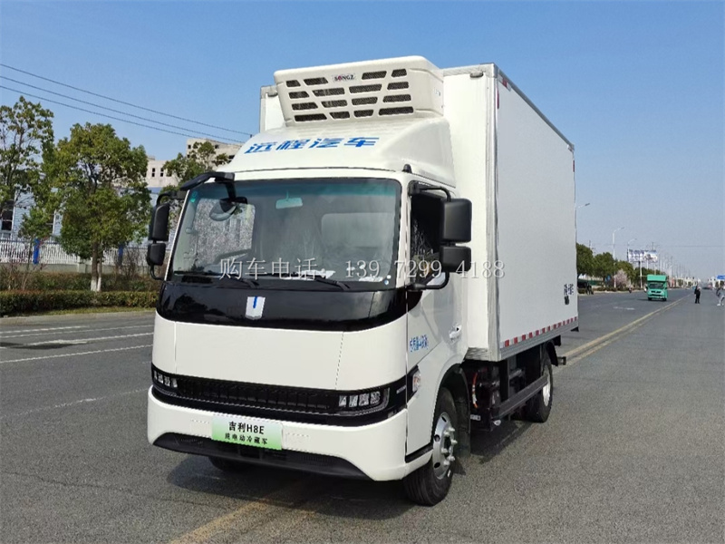 4米2绿牌吉利星智H8E纯电动冷藏车,新能源二代升级产品(三电系统〈电路、电控、电池〉同步升级);3360轴距;宁德时代(水冷循环)、磷酸铁锂电池、电量89.12kwh;200-280公里;驱动电机:电机类型 吉利/永磁同步电机、汉德电驱动桥、免维护轮边;额定功率65kw、最大功率120kw;2/2+1;2.4T/4T(核载5T);7.00R16真空胎;液压制动、前鼓后鼓;4米2绿牌吉利星智H8E纯电动冷藏车配置:宽体单排驾驶室、7寸液晶仪表盘、八寸多媒体大屏、倒车影像、电动空调、电动门窗、日间行车灯、车联网、BCM功能(自动落锁、内部照明延时功能、内部照明自动熄火功能、车门防盗报警)、ABS、T-BXO。质保服务;三电〈电池 电机 电控〉;质保期:六年 三十万。