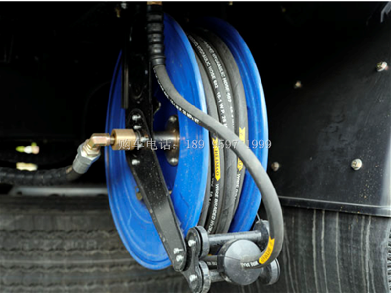 高压清洗系统由高压水泵、高压管路系统、分水阀、喷杆/喷嘴等组成。用于给角喷、扫盘喷杆、吸嘴喷杆、自洁、喷雾、手持喷枪提供高压水。高压水泵采用知名品牌柱塞式水泵,当高压水泵起动及工作水阀切换时,水泵能自动卸荷。通过安全阀和溢流阀保护,有效防止高压水泵损坏。侧后部装有机械式自动卷绕冲洗卷盘,配20m高压软管和不同角度的清洗枪,可用于清洗车身和其它设备和设施。