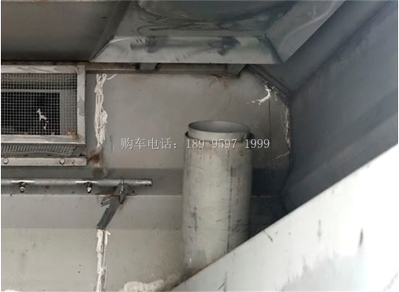 垃圾箱中的污水箱内采用大平面斜坡结构,最大卸料角度可达50度,更易于倾倒垃圾。污水箱内设置了防溢满报警和作业自停装置,可防止污水作业时从吸管溢出,造成二次污染;污水箱内的高压自洁装置在倾倒垃圾后可对污水箱进行自动清洗。垃圾箱中的吸尘筒采用双层不锈钢结构,便于吸尘筒长期磨损后的更换。