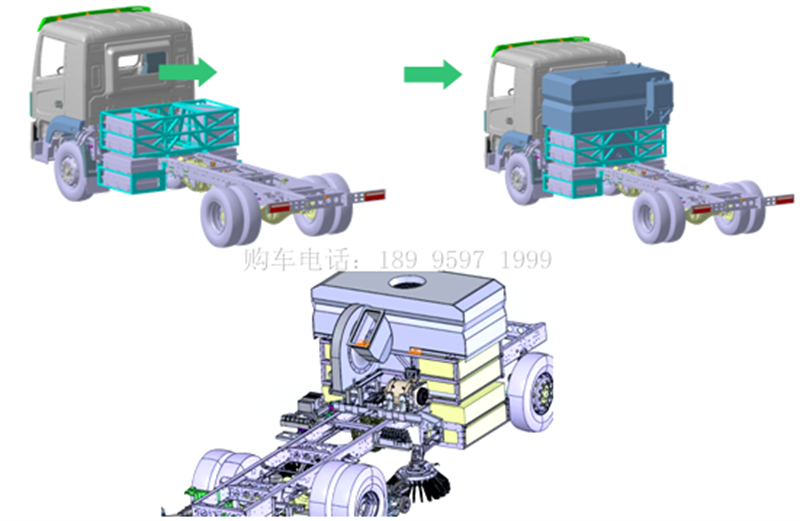 2.底盘与上装融合设计从电气、控制软件、结构布置等维度一体化设计。作业续航更长、尺寸更紧凑、通过性更好。