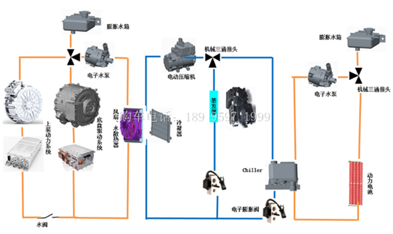 整车散热系统、空调系统集成,自主开发集成式热管理机组,实现整车电机电控、动力电池、上装动力单元散热和驾驶室空调功能。