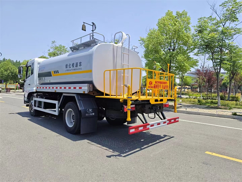12方东风福瑞卡F9雾炮洒水车上装配置:材质:罐体采用Q235,隔板厚度3mm,罐体碳钢厚度4mm,封头厚度4mm.大口径直通球阀,铝合金三通,加粗主管道(76),铸铝管接件:铝合金弯头三通、铝合金法兰三通、铝合金泵出口四通、铝合金泵进口直通,模具一次性压铸成型,无焊缝,避免漏水,标准化设计,互换性好,方便维修换件,铝合金材质更轻量化,美观实用,提升产品档次。其他配件:铝合金后洒、不锈钢球阀、高压水炮,冲孔板平台:2mm冲孔板,防滑性更好,平台上不积水,结构优化,冲压成型,强度更好,轻量化设计,美观实用,提升产品档次.