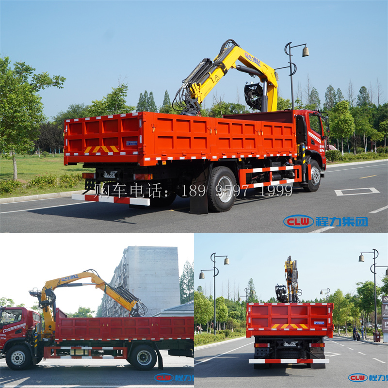 东风华神DV3抓斗式垃圾车上装程力随车人 6.3 吨 3 节,上操作,360 度全回转,电控一控三操作阀,臂长 8.2 米,全伸臂可抓取 900KG,配专用 3+2 万能夹具(可旋转、开合、仰俯)。
