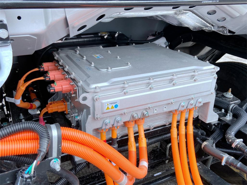 新款4米2江淮帅铃ES6纯电动冷藏车升级优化的另一显著特定就是采用多合一控制器,集成电机控制、电池管理、整车控制等功能,集成度更高同时能耗也能更低,整个发动机舱只有一个江淮自己的多合一控制器。