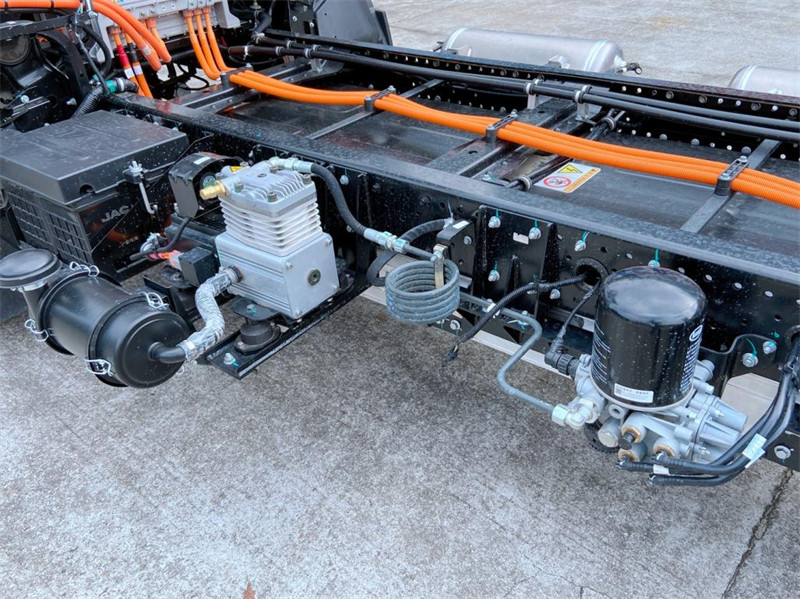 新款4米2江淮帅铃ES6纯电动冷藏车使用气刹需要额外配备电动打气泵,帅铃ES6的打气泵是瑞立提供的产品,连带干燥罐、冷却管等。