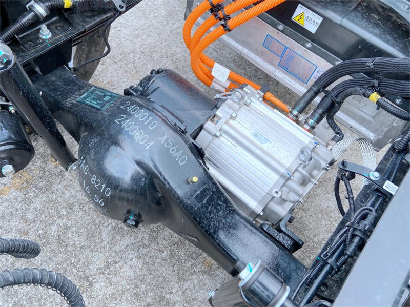 新款4米2江淮帅铃ES6纯电动冷藏车驱动方面采用了集成式电驱桥,额定/峰值功率:65/130kW,额定/峰值扭矩150/360牛米,从性能上看,基本可以与目前主流的燃油轻卡持平,而且电动机的特性也让动力输出更直接高效,能耗低点起步加速更轻快。同时这款电驱桥还具备了十万公里长换油,保养间隔更长了。从图片上也能看到该车采用了气刹制动并配了断气刹,不同的是制动系统的形式有别于一般的轻卡,采用楔式制动器+鼓刹。