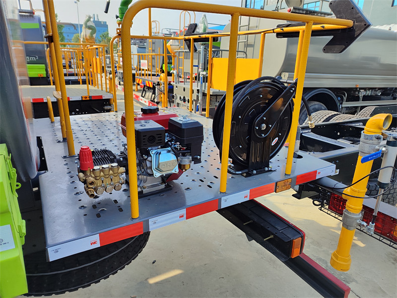 在功能方面,这款洒水车不仅仅局限于洒水作业。它还可以根据实际需求进行多种模式的切换,如高压冲洗模式,能够强力去除路面的顽固污渍和杂物;喷雾模式则可以为城市营造出一片清新的氛围。此外,它还具备智能化的控制系统,操作简单便捷,让操作人员能够轻松驾驭这台“大家伙”。