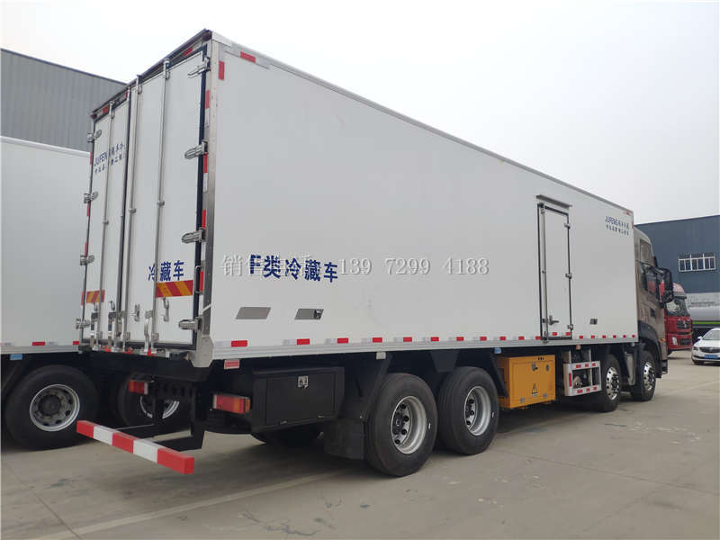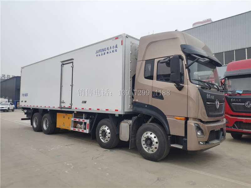 9米6东风天龙KL前四后八肉钩冷藏车底盘配置:底盘采用湖北十堰东风商用原厂底盘,东风天龙高顶双卧,国六DDi11E465-60型康明斯465马力发动机,电动门窗、空调、动转、断气刹,ABS,中控锁、遥控钥匙、巡航、刹车自调臂、GPS.座椅为空气减震座椅.行驶记录仪,液晶显示屏.可调大灯、后桥为10吨德纳免维护后桥,东风14档变速箱、液力缓速器,12R22.518PR真空胎。