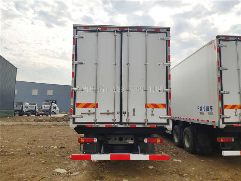 5. 卡槽:主用要于装货不满体厢后尾装部好之后,固货定物,不让货左物右摇晃,防撞止坏厢体,并止防货掉物落损坏。新款重汽豪沃前四后八9米6冷藏车.