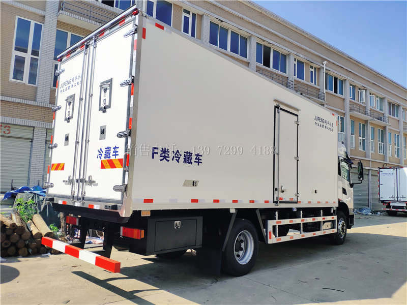 东风天锦KR六米八冷藏车厂家13972994188陆经理,整车型号:DFH5180XLCEX7,整车外形尺寸:9000X2600X3960(mm),厢体内部尺寸:6680X2440X2570(mm),东风天锦KR六米八冷藏车底盘采用湖北十堰东风商用原厂底盘,东风天锦KR驾驶室,5000轴距,康明斯B6.2NS6B245型245马力发动机,法士特8档变速箱,275/80R22.5 18PR真空胎,400L大油箱 4.5/9吨前后桥驾驶室电动翻转司机座椅可通风,可加热,可腰调。后视镜加热,多媒体大屏,导航,倒车影像,车道方偏离,车道防碰撞。