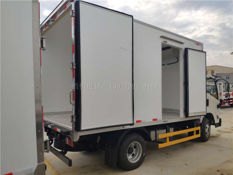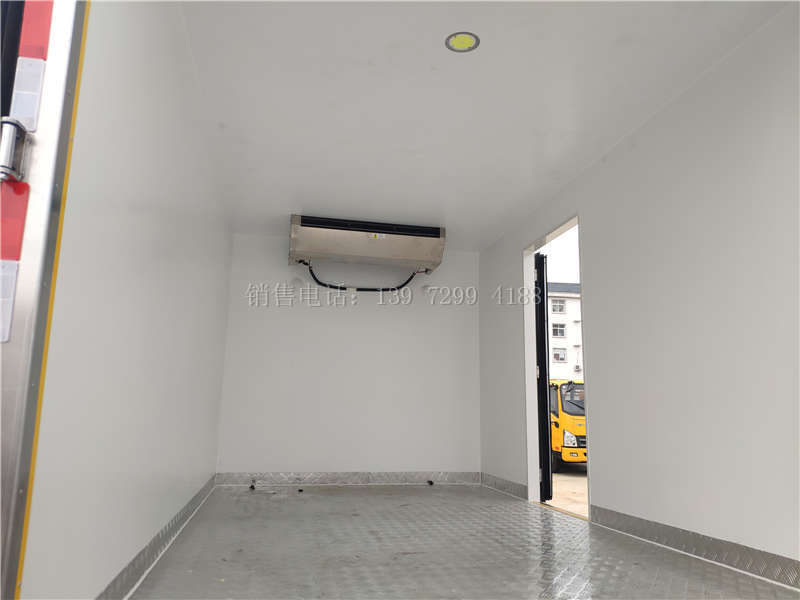 江铃凯运冷藏车4.2米报价,该款江铃凯运冷藏车上装厢体内部净空尺寸长宽高为:4080×2000×1900(mm),总容积15.5立方,厢体采用内外专用玻璃钢板材(可反射阳光),中间为80mm厚保温层,侧门及后开门为不锈钢锁件,不锈钢包角,不锈钢门框及锁件,带有顶灯及防撞块。制冷机组可选装国产或进口冷机,选装保鲜-5度,冷冻-15度制冷机组。国六版江铃凯运冷藏车,通过轻量化的设计及合理新工艺上装制作,保证了整车不超重,蓝牌上户无忧。