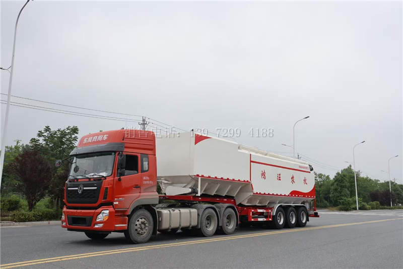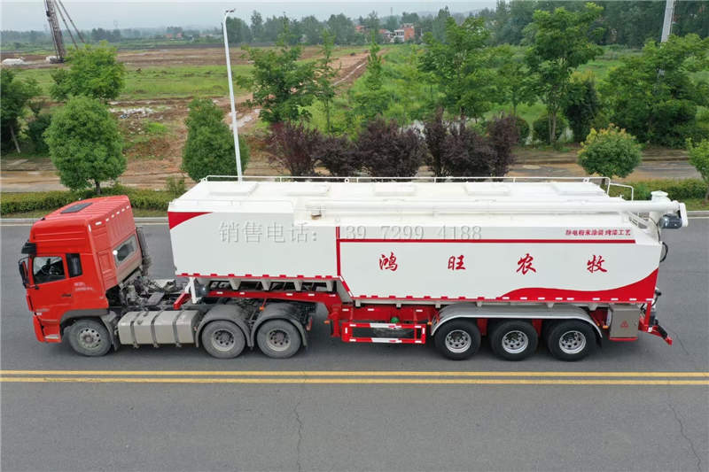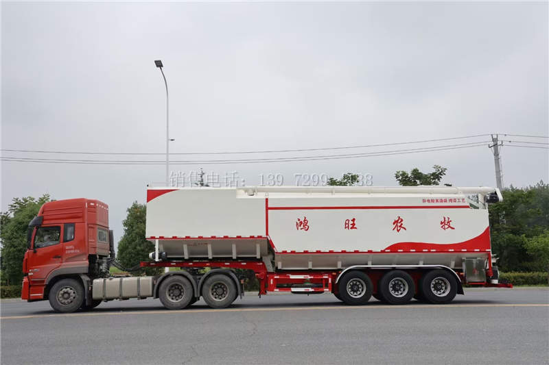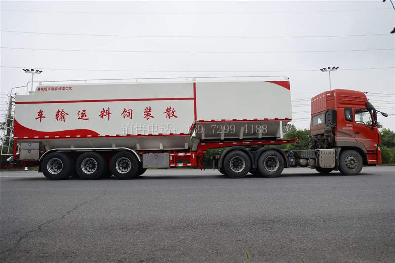 半挂散装饲料运输车多少钱一辆?半挂散装饲料运输车价格在22万-24万之间,半挂散装饲料运输车罐体采用轻量锰钢焊接而成,罐体尺寸长12980X宽2550X高3998mm罐体容积64.8立方,罐体内分5个独立隔仓。