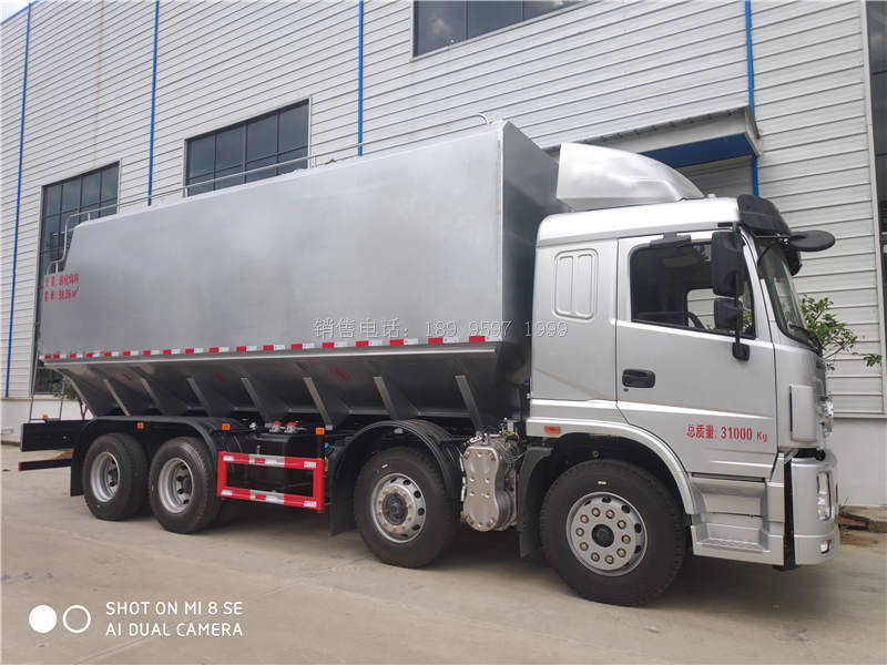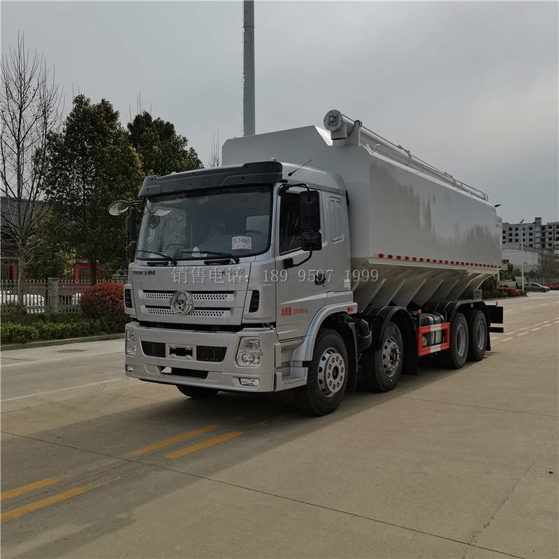 三环昊龙短四轴散装饲料运输车上装配置:罐体材质采用3mm加强锰钢板,整车3条绞龙,有3个液压马达(美国伊顿)带动卸料,顶部绞龙液压控制举升,左右旋转由1个液压马达,可左右旋转180°,罐体可根据用户要求做多个独立分仓,可独立控制各分仓卸料顺序和速度,卸料管倾斜60度,垂直卸料高度9米,整整车卸料完用时20分钟 。可选装电动动控制,车载发电机,绞龙加长。油漆工艺 钢材抛丸处理,表面皮膜处理,静电粉末涂装,220度高温烘烤,常温冷却.(耐高温,耐酸碱,质保三年)。