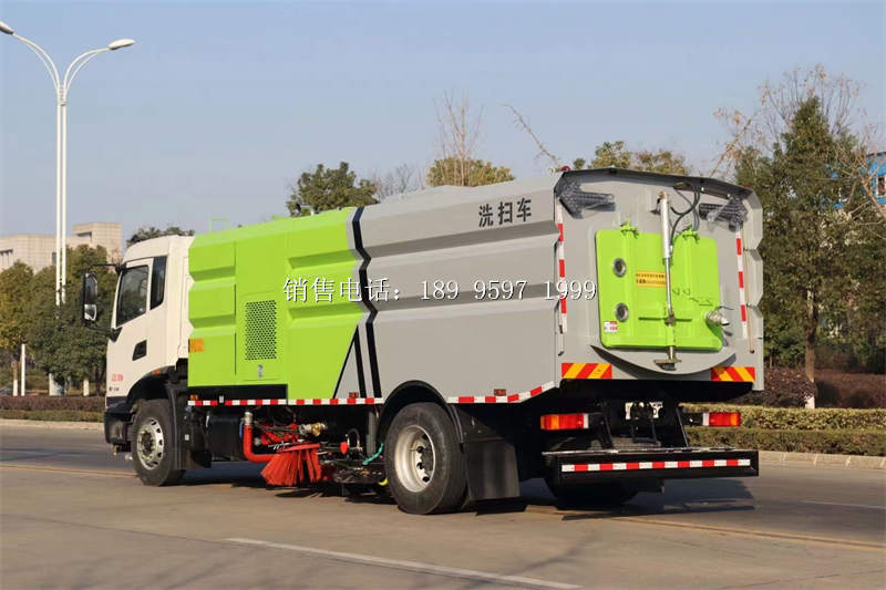 国六东风天锦KR多功能洗扫车上装配置:康明斯170马力副发动机,中两置扫盘,GTM高水压泵,清扫宽度3.5米,免护维大功率风机,北星极电子水泵,海瑞普斯电磁阀组。带压高前喷雾,对面路污垢进行点定冲洗清理,又在可较干净路的面配低合压冲洗作业,进路行面降燥处理,低前压冲,左右高喷压杆,高压后喷雾,20米压高冲洗卷盘,可可吸扫,相当于一扫路车+一台面路清洗车同工时作。
