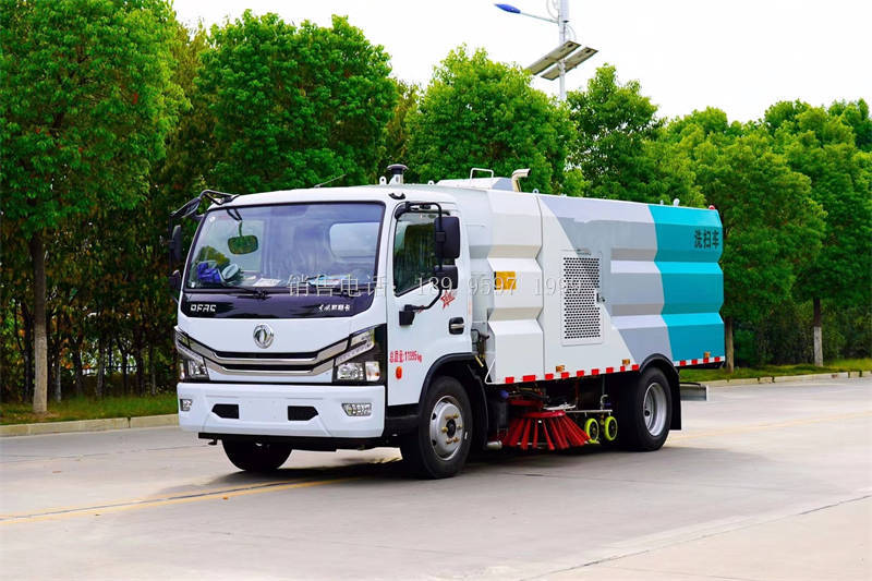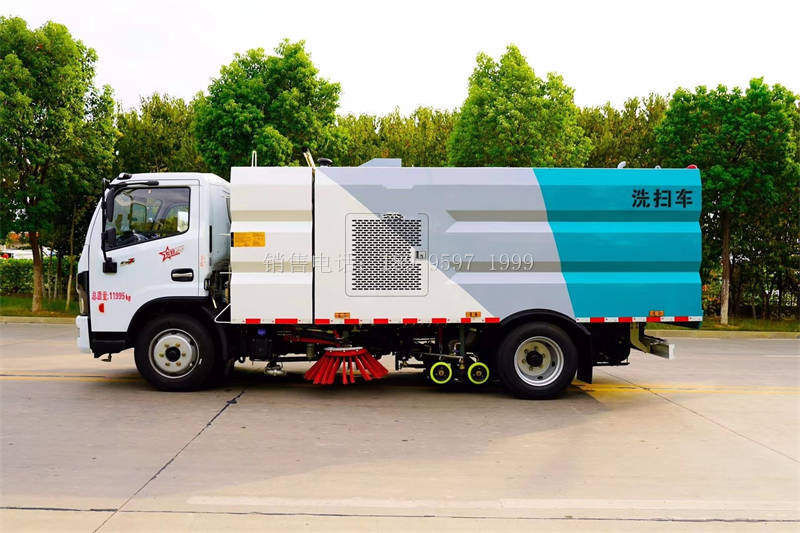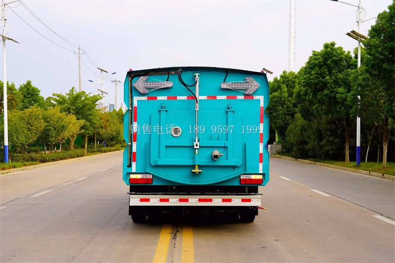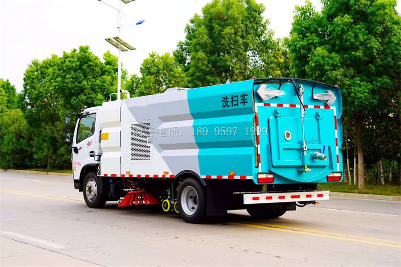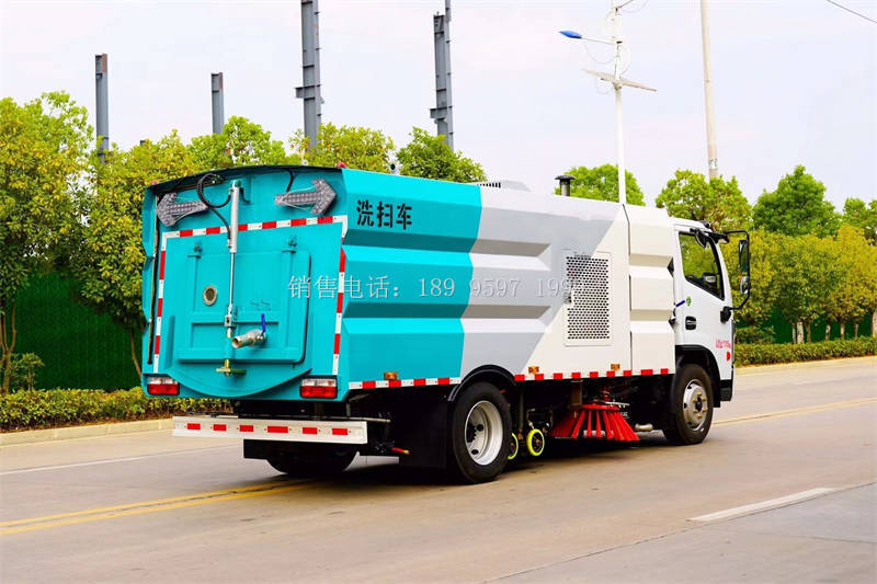 国六东风大多利卡多功能洗扫车上装配置:不锈钢水箱(4立方)、不锈钢垃圾箱(5立方)、康明斯140匹马力副发动机 、中置2扫盘、大力马达、进口JPE高压水泵(前冲\侧喷\中喷\后喷雾\侧冲洗车水枪\垃圾箱自洁装置)、万向高压路沿清洗、低压泵前冲;不锈钢高压管路、控制开关、传感器、尾部LED箭头灯、机油、垃圾箱、水箱均带防溢或低水位报警装置;倒车室内监视器、15m高压洗冲卷盘。