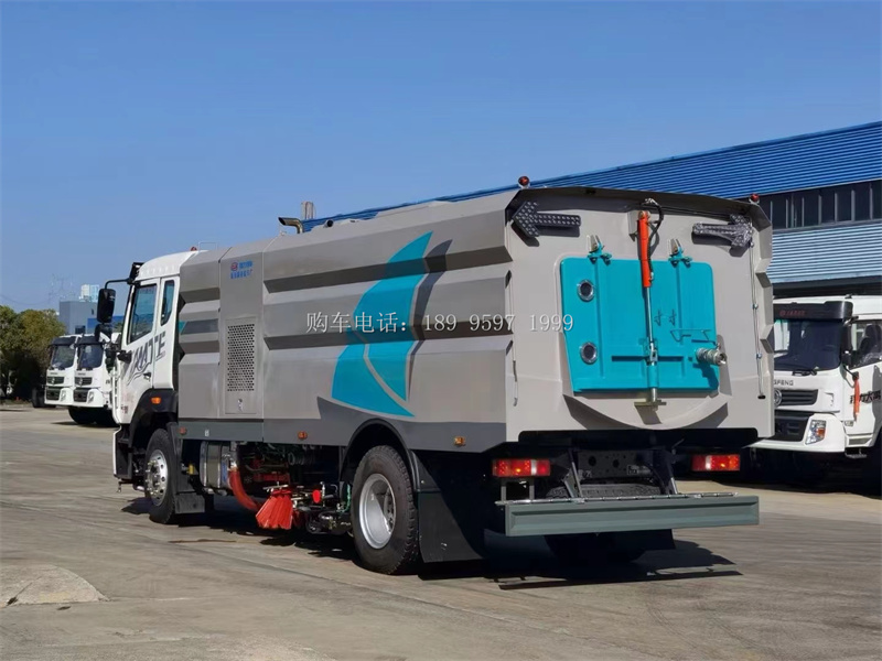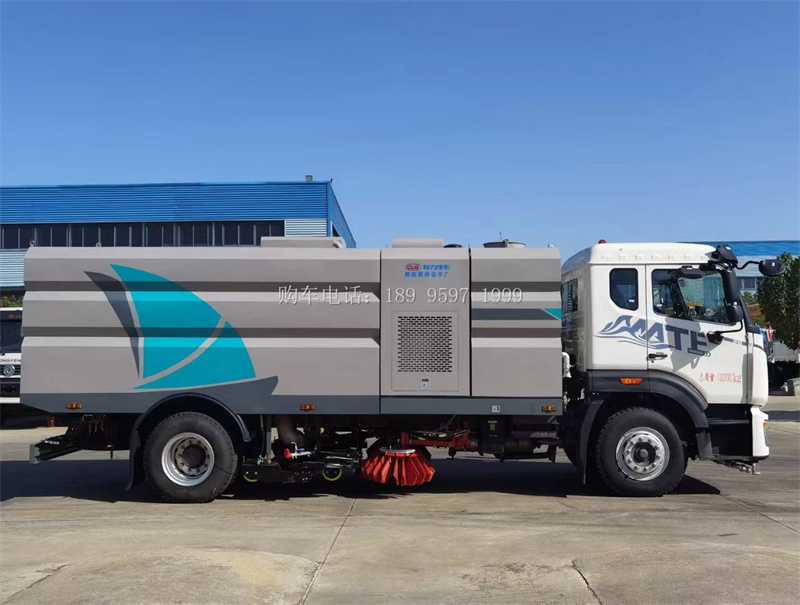 16方重汽豪沃MATE单桥洗扫车上装配置:加装副发动机、风机、高压水泵、清水箱、垃圾箱、左右立扫、带喷水杆的宽吸嘴、低压冲洗系统、扫盘降尘系统、液压系统、专用装置电控系统和副车架等改装而成,副发动机采用康明斯170马力副发动机,带2个中置扫盘,力沃马达,低压水泵,GTM高压水泵(前冲/侧喷/中喷/后喷雾/冲洗水枪/垃圾箱自洁装置);高压路沿清洗喷头;不锈钢垃圾箱;不锈钢管高压管路;PLC一键控制;尾部LED箭头灯;垃圾箱、水箱均带防溢低水位报警装置;倒车及洗扫状态室内监视器。20米冲洗卷盘。 水箱9方,垃圾箱7立方。