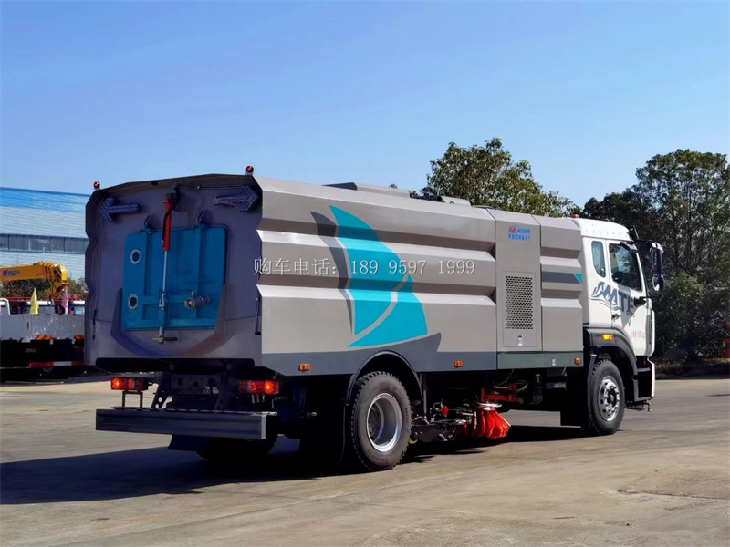 2.采用“中置两盘扫+中置宽吸嘴+内置高压主喷杆+左右高压侧喷杆”布置,小流量高压水泵,左右喷杆 V 形布置和吸嘴内置主喷杆无间隙高压喷嘴喷水,洗净率高、作业速度快。