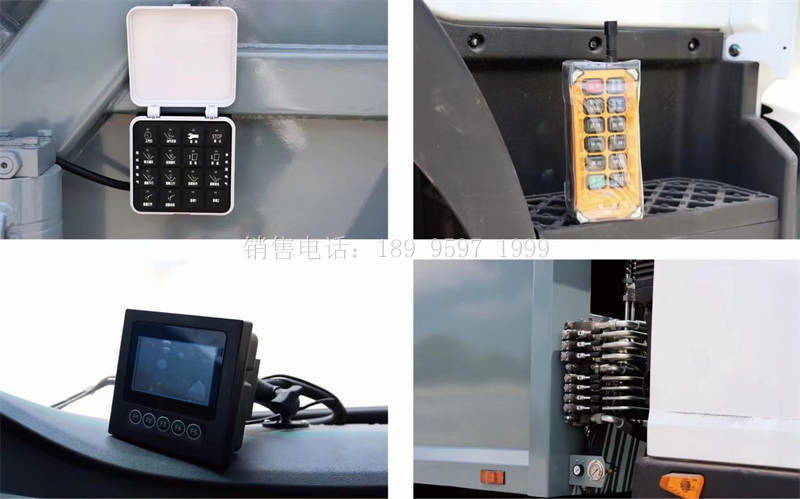 (3)、智能控制系统采用进口 CAN 总线设计,模块化结构。通过接近开关和油压感应两种方式结合,实现高效、稳定、易维护的压缩方案,具备手动、自动、半自动三套操纵方式,驾驶室内部、箱体前部、箱体后部均可操作并配备远程遥控器,可全方不同的作业环境方便高效。