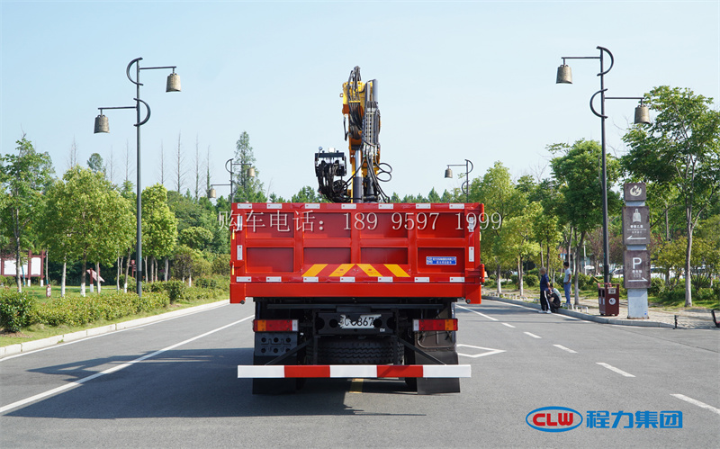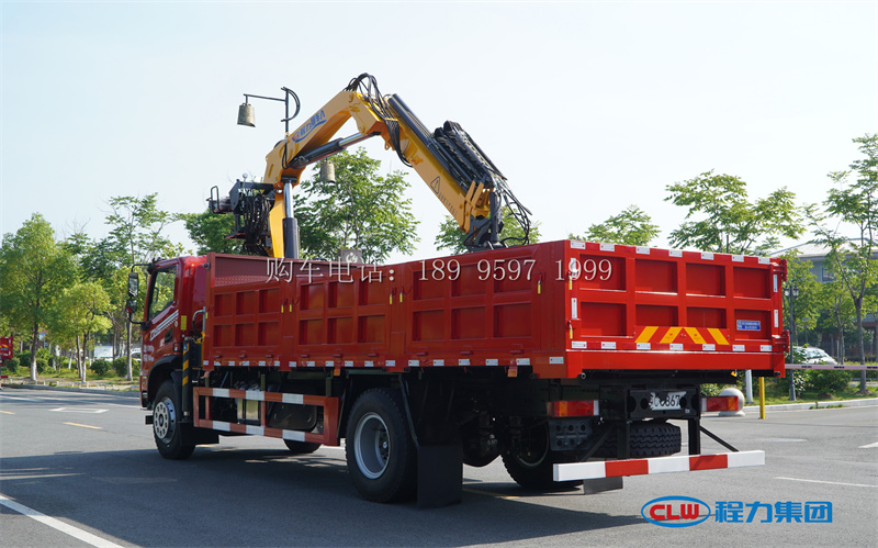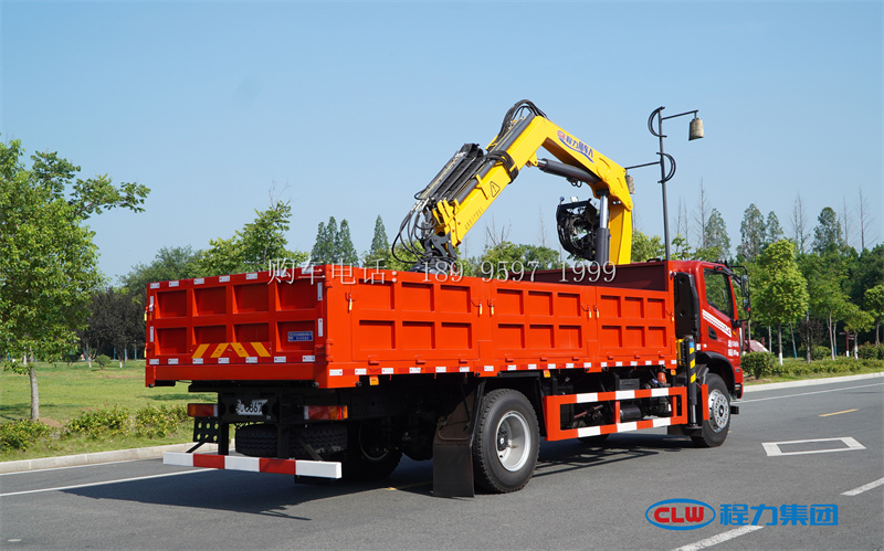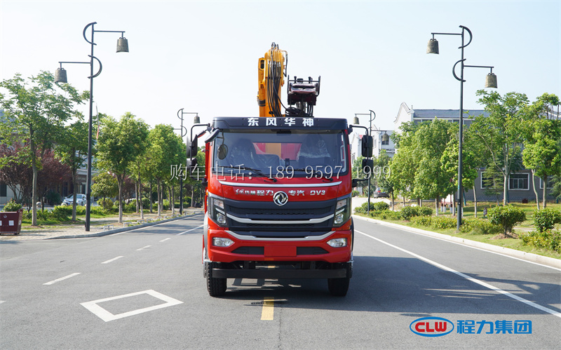 东风华神DV3随车吊式抓斗式垃圾车上装程力随车人6.3吨3节,上操作,360 度全回转,电控一控三操作阀,臂长8.2 米,全伸臂可抓取900KG,配专用3+2万能夹具(可旋转、开合、仰俯)。