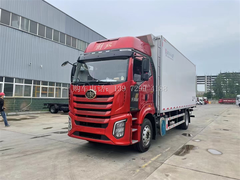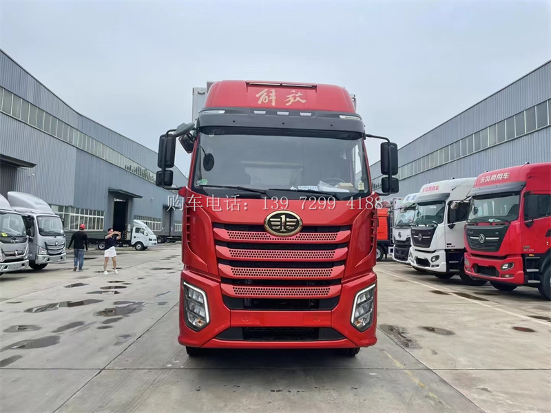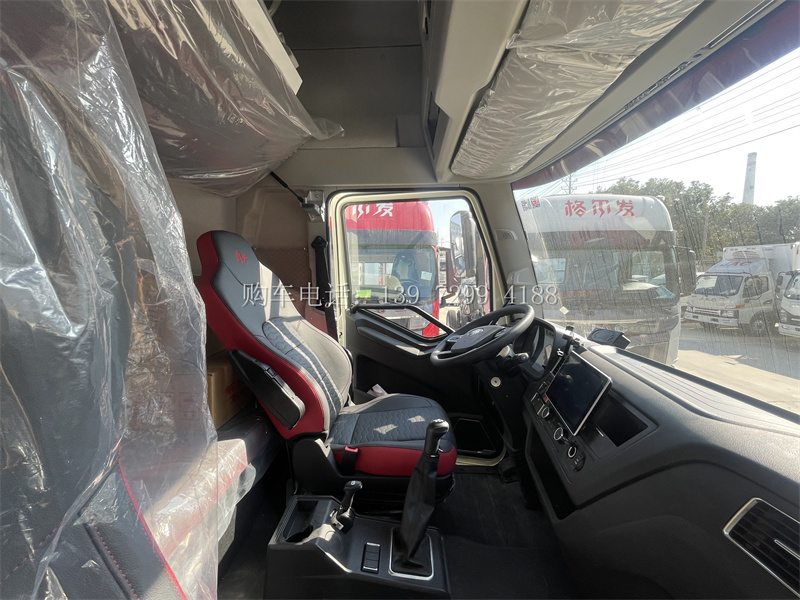新款6米8解放J6G冷藏车底盘配置:2023款J6G领航版全浮高顶排半平地板驾驶室、彩屏仪表、电动玻璃升降、电动后视镜、侧围网兜、后围窗帘导轨、全景窗帘导轨、头顶放物盒、驾驶员座椅为真皮通风加热座椅(腰托、扶手)、副驾驶员座椅为旋转座椅、折叠桌、带2个24V电源接口、单DIN北斗兼容车载系统、十寸大屏集成四方位影像、多功能大角度方向盘、手机支架、高品质扬声器、脚窝灯、顶导流罩。自动空调、前下防护装置、铝油箱600L、50L尿素罐、速比:3.727、驾驶室四点空气悬置、电动液压举升装置、软轴变速操纵、铝合金储气筒、120AH免维护蓄电池、电控硅油风扇离合器、长保养燃油粗滤器、LED大灯、LED日行灯、悬架7/7+3、定速巡航、机箱桥体现10/10/10万公里长换油周期、限速89km/h、T-box2.0、低底盘、领航版。