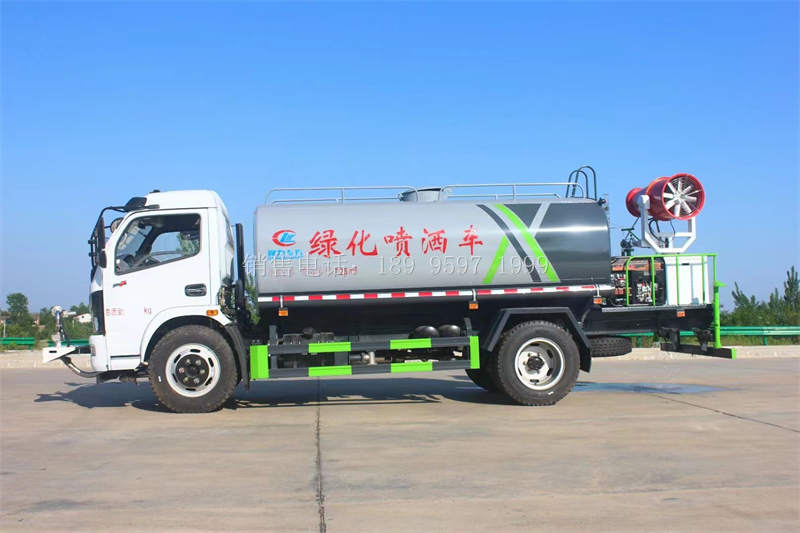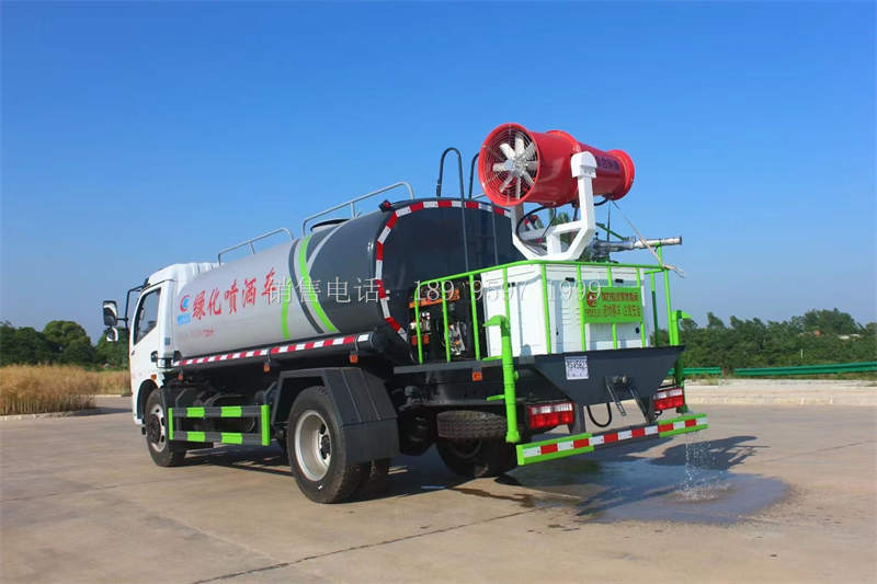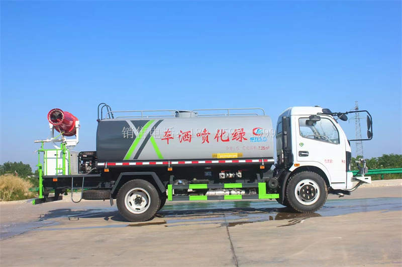 【9.3方东风福瑞卡雾炮降尘洒水车】是我厂生产的绿化环卫喷洒车系列产品,该系列产品具有绿化环卫洒水多功能,洒水车又称为喷洒车、多功能洒水车、园林绿化洒水车、水罐车、运水车。洒水车适合于各种路面冲洗,树木、绿化带、草坪绿化,道路、厂矿企业施工建设,高空建筑冲洗。具有洒水、压尘、高、低位喷洒,农药喷洒、护栏冲洗等功能,还具有运水、排水,应急消防等功能。